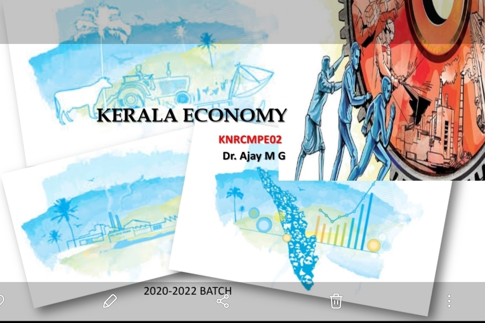 The ‘Kerala model’ has often been identified as one worth emulating because it is seen to have taken the state to the zenith of human development and democratic governance. The course intends to the past and present dimensions of the Kerala experience from a historical, political and economic perspective, thus providing a fresh understanding of the emerging concerns in the state and the construction of an ethically viable development agenda, eschewing the scourge of social inequity. The contents of the course are structured to make students aware of Kerala experiences and burning issues in the agriculture, industrial and social sectors of the Kerala economy.